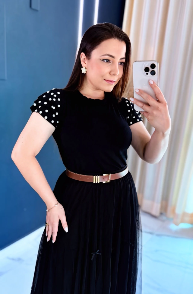 Blusa Viscolycra Manga de Babado com Pérola Anne – a peça ideal para quem busca elegância e conforto em um só look!